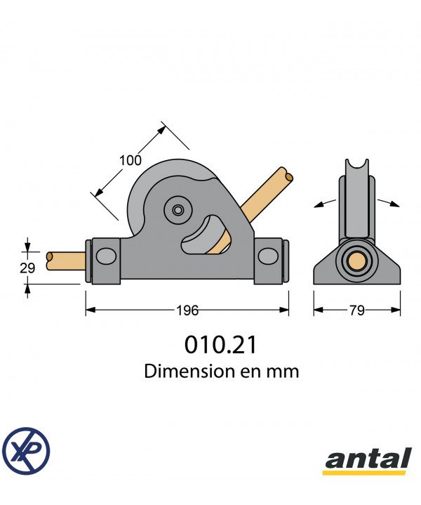010.21 - Poulie simple axes creux 100mm pour cordage 16 mm - SWL : 3500 Kg