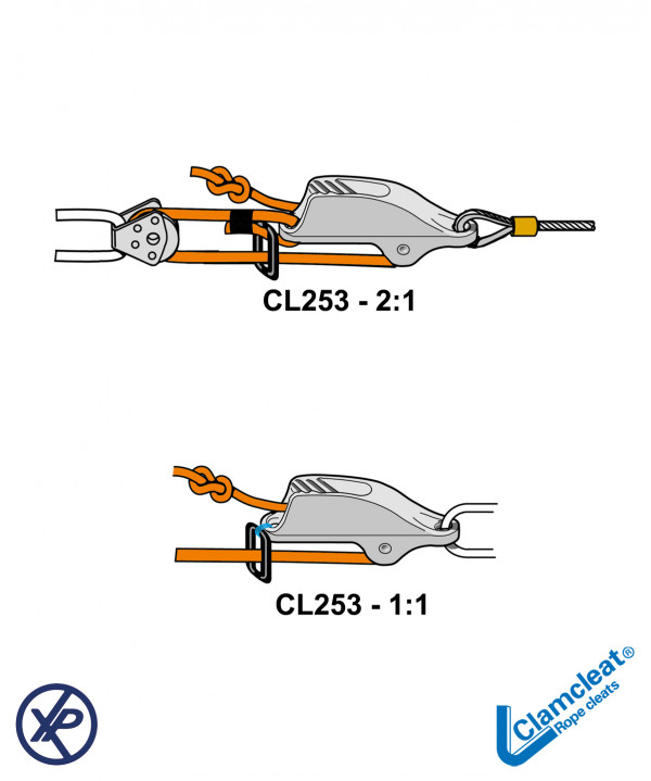 CL253 - Coinceur "Junior" aluminium finition argent avec réa pour trapeze et hale bas- Cordage 4-8mm