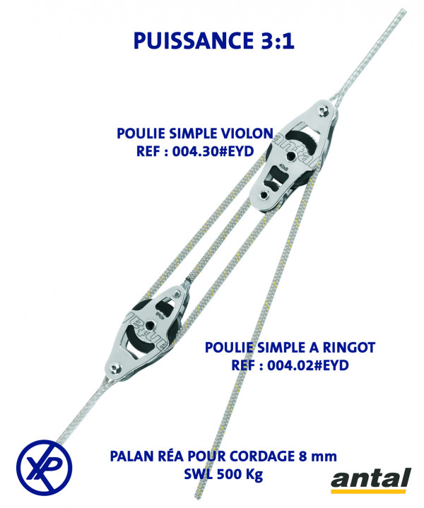 004.31_C - Poulie violon ringot à coinceur - Type Mini Ø40x8mm - SWL= 320Kg.