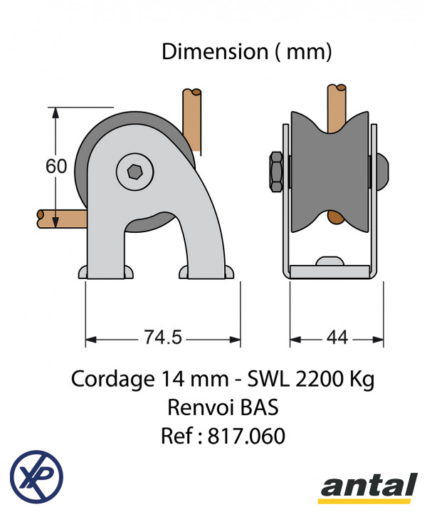 D3610 - Déviateur à faible friction - Cordage Ø10mm - MWL=2300Kg