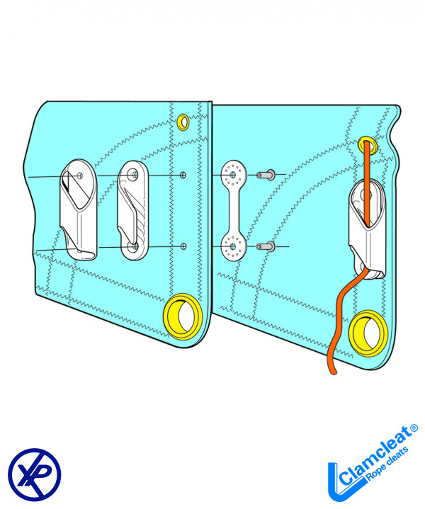Il peut être monté en deux positions sur la voile. La conception de la machoîre permet un verrouillage rapide facile à relâcher, ajouté à son profil bas, c'est un taquet idéal pour ajuster les lignes de chute.