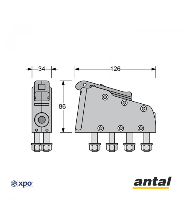 Lorsqu'il n'y a pas de possibilité d'accéder aux goujons, écrous en rondelles en dessous du jammer ( en montage de mât par exemple), ANTAL propose une embase spéciale de fixation qui peut être montée par l'extérieur avec 4 vis (non fournies).