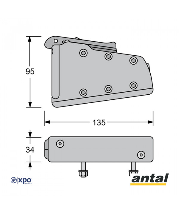 Lorsqu'il n'y a pas de possibilité d'accéder aux goujons, écrous en rondelles en dessous du jammer ( en montage de mât par exemple), ANTAL propose une embase spéciale de fixation qui peut être montée par l'extérieur avec 4 vis (non fournies).