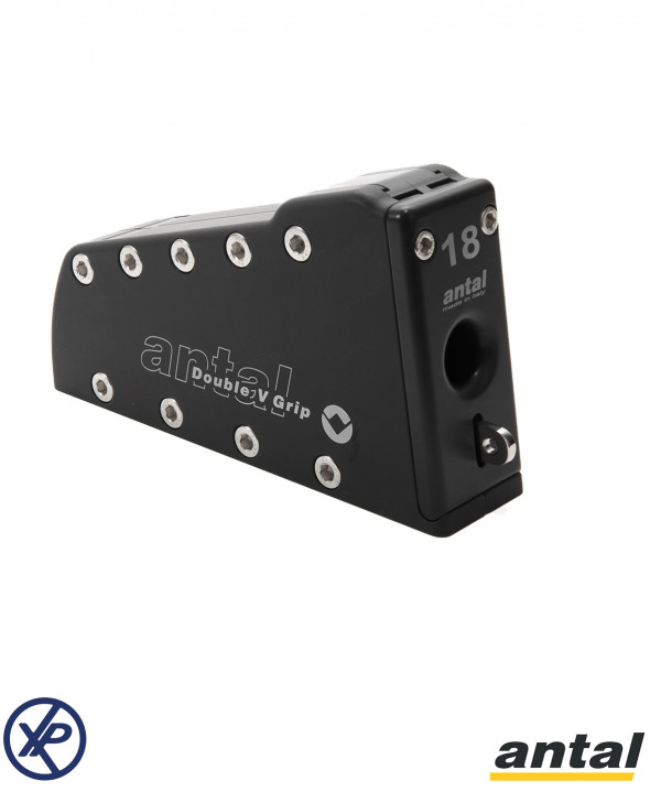 Le DV-grip est un système de blocage consistant en 2 blocs opposés ayant chacun une gorge en V, il en résulte un grip sur 4 faces à rapprocher des 2 faces des jammers conventionnels avec les avantages suivants: