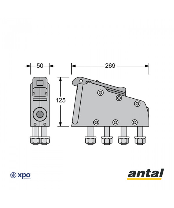 Lorsqu'il n'y a pas de possibilité d'accéder aux goujons, écrous en rondelles en dessous du jammer ( en montage de mât par exemple), ANTAL propose une embase spéciale de fixation qui peut être montée par l'extérieur avec 4 vis (non fournies).