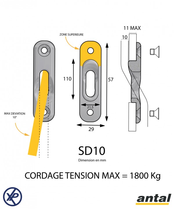SD10 - Filoir déviateur S-Drive - Faible Friction - Épaisseur du pont 10mm - SWL=1800 Kg