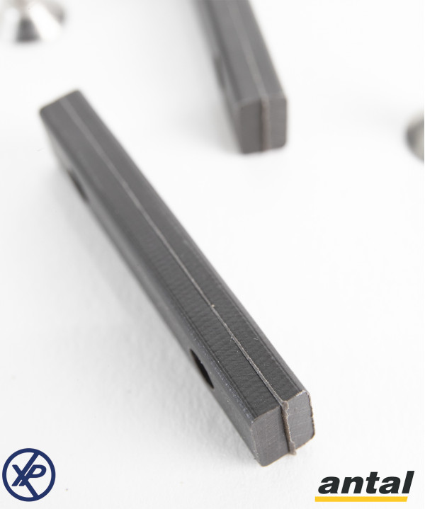 Pour garantir un alignement parfait entre les sections de rail successives, Antal fourni un raccord d’alignement en nylon livré avec deux vis de fixation.