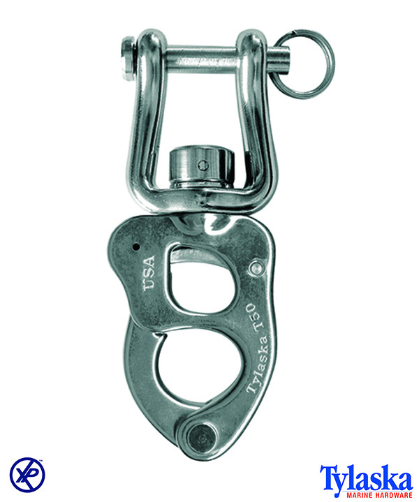Les mousqueton à gachette T50 de Tylaska sont parfaites pour les applications nécessitant une immense résistance et un faible poids. Ils ont une résistance à la rupture de 22T et ne pèsent que 4.3Kg dans la configuration de l'anneau standard.