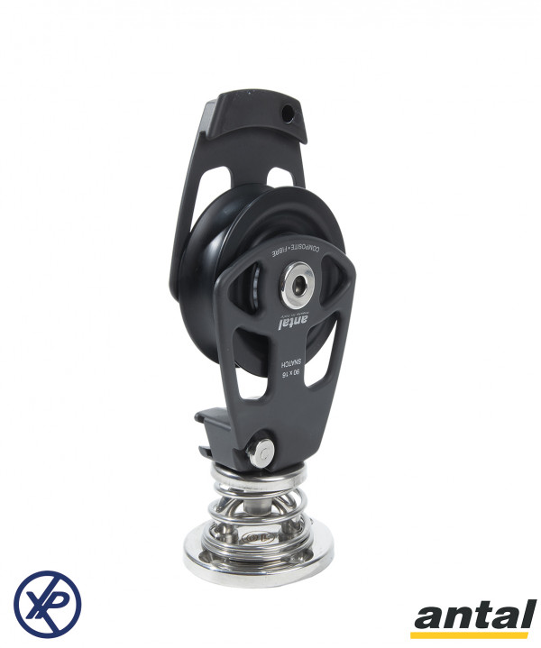 Trois poulies ouvrantes diamètre 90, 120 et 150 mm sont disponibles montées sur platine pad-eye et ressort stand up.