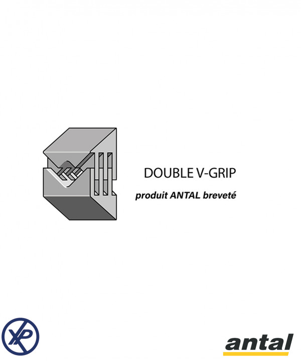 Le DV-grip est un système de blocage consistant en 2 blocs opposés ayant chacun une gorge en V, il en résulte un grip sur 4 faces à rapprocher des 2 faces des jammers conventionnels avec les avantages suivants: