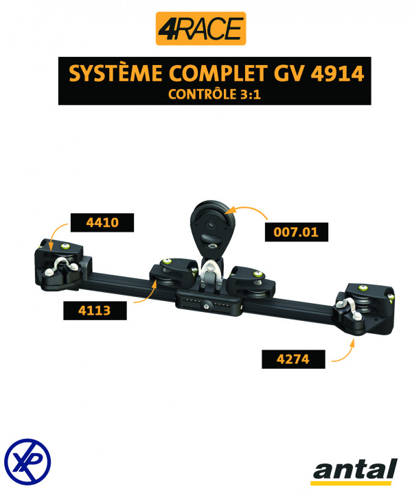 4914 - Ensemble complet du système de Grand-voile - 4RACE TAILLE 110 - Rail 31x21 - Contrôle 3:1 - Avec 1M50 de rail compris