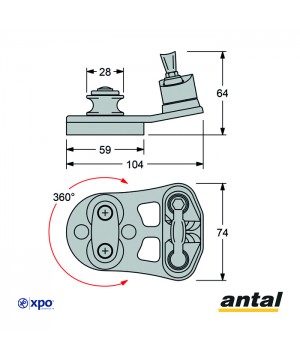 522.140 - Poulie Ø60mm avec coinceur - Pivote à 360° sur double roulement à billes pour cordage jusqu'à 12mm