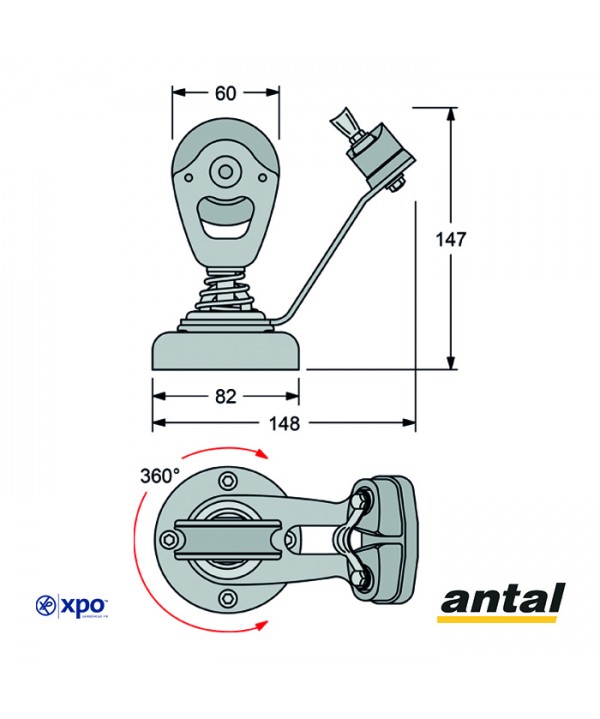 522.022 - Tourelle 360° avec coinceur - 2 réas de Ø28mm pour cordage jusqu'à Ø10mm