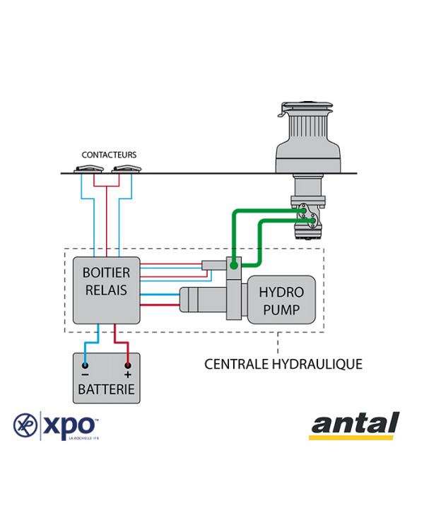 Chaque winch doit être relié à deux contacteurs. Ces modèles sont étanches. L’utilisation de membranes de couleurs différentes permet le repérage rapide des vitesses.